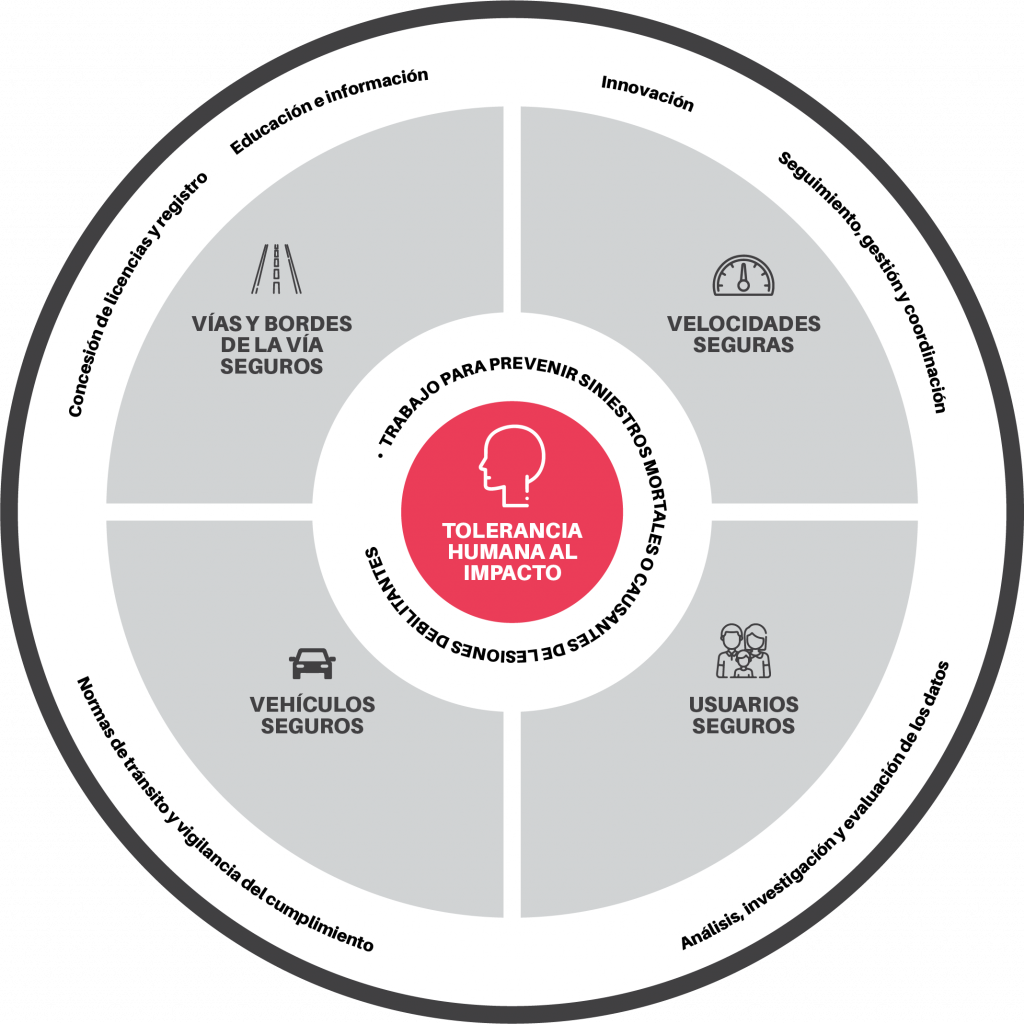 Todos los componentes del sistema vial deben ser reforzados para garantizar que nadie muera en las vías. La seguridad de los carros es un componente fundamental para disminuir la exposición al riesgo derivado del volumen de tráfico motorizado y, por lo tanto, prevenir el daño a la vida y a la integridad física.